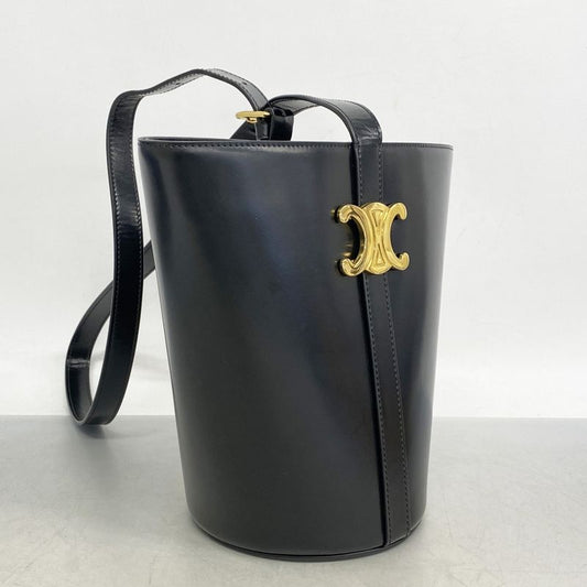 Celine Shoulder Bag Triomphe Leather Black Gold Hardware Women