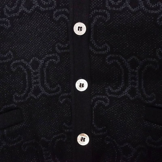 Celine Vintage Triomphe Logo Macadam Pattern Knit Cardigan Wool Silk Long
