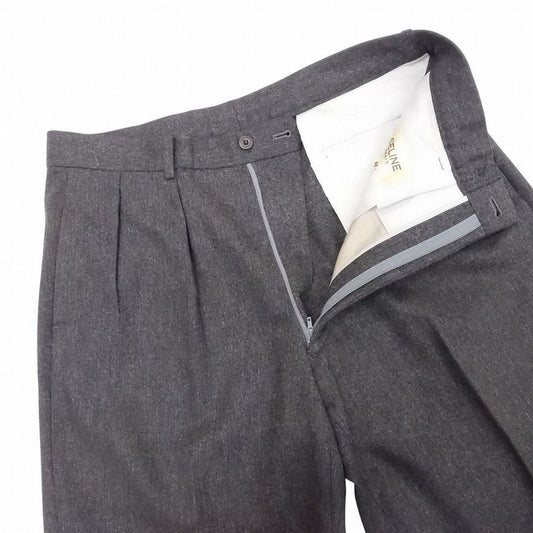Old Celine Slacks 2 Tuck Pants One Point Logo Triomphe Wool Bottoms Size 88