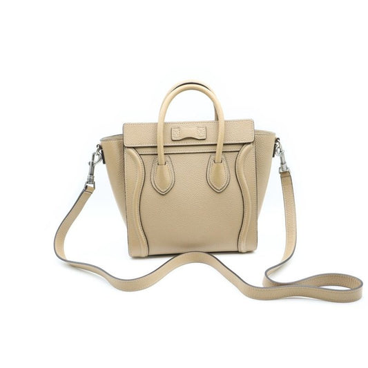 Celine Luggage Nano Shopper Handbag 2way Shoulder Dune Beige Leather