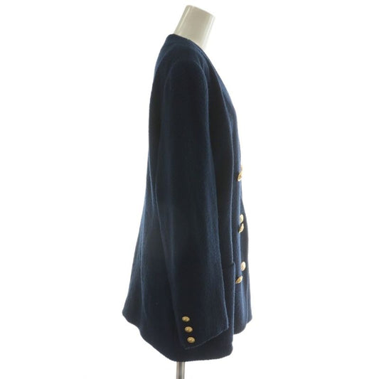 Celine Vintage Collarless Jacket Outer Double Logo Embroidery Patch Gold Button