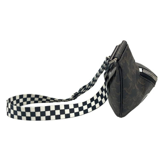 Celine Waist Pouch Triomphe Canvas Belt Bag 195972 Black Dark Brown and White