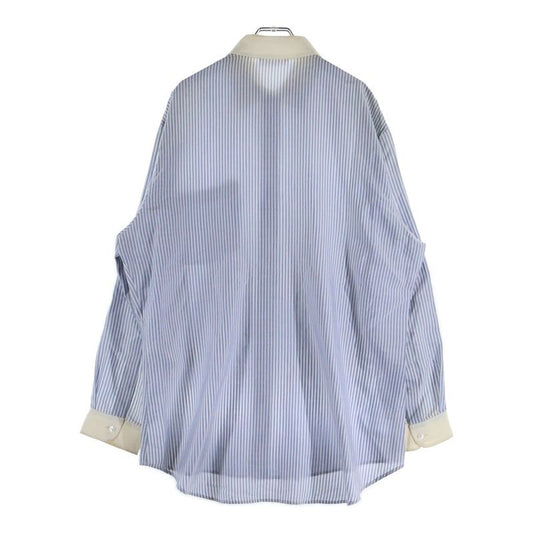 Celine Silk Stripe Front Triomphe Logo Embroidery Long Sleeve Shirt Blue White