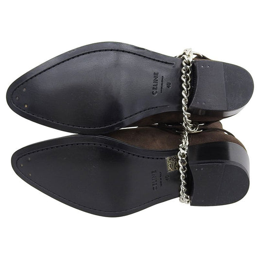 Celine Unused Suede Camargue Biker Chelsea Boots Shoes Men's Dark Brown 40