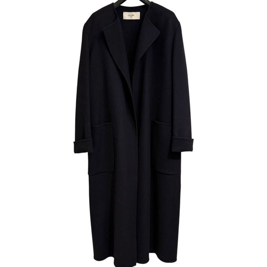 Celine 100% Pure Cashmere Open Front Belted Coat 2m6816700 Size 34 Navy Women