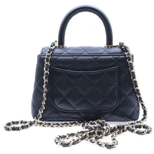 Chanel Caviar Skin Extra Mini Coco Handle 2WAY Chain Shoulder Bag Handbag Black