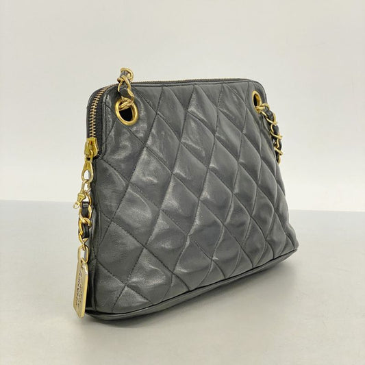 Chanel Shoulder Bag Matelasse Lambskin Black Gold Hardware Women