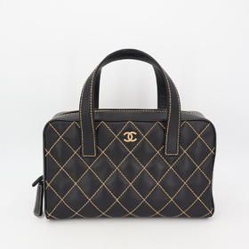 Chanel Handbag Vanity Bag Caviar Skin Leather Black