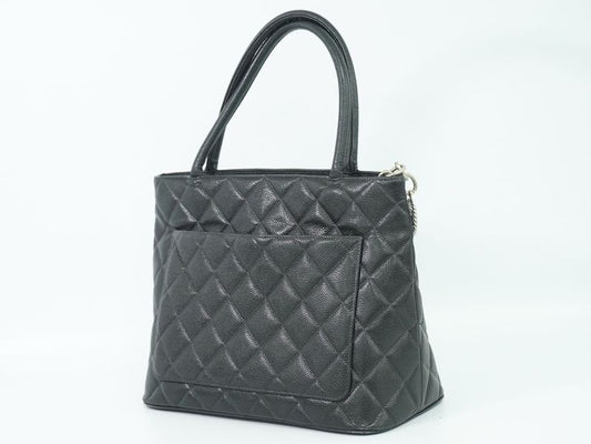 Authentic Chanel Coco Mark Revival Tote Handbag Caviar Skin Leather Black Coco