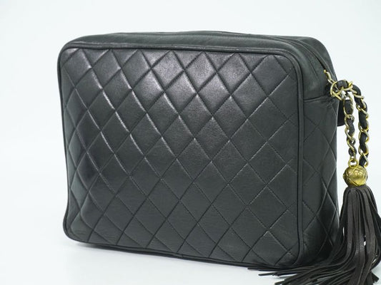 Authentic Chanel Coco Mark Matelasse Tassel Chain Shoulder Bag Lambskin Leather