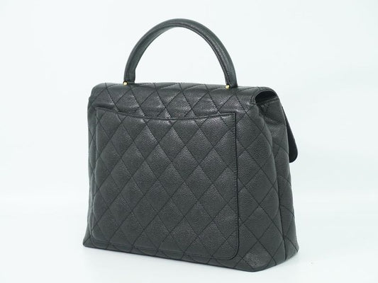Authentic Chanel Coco Mark Matelasse Turnlock Handbag Caviar Skin Leather Black