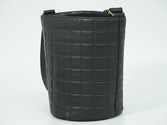 Authentic Chanel Coco Mark Chocolate Bar Shoulder Bag Lambskin Leather Black