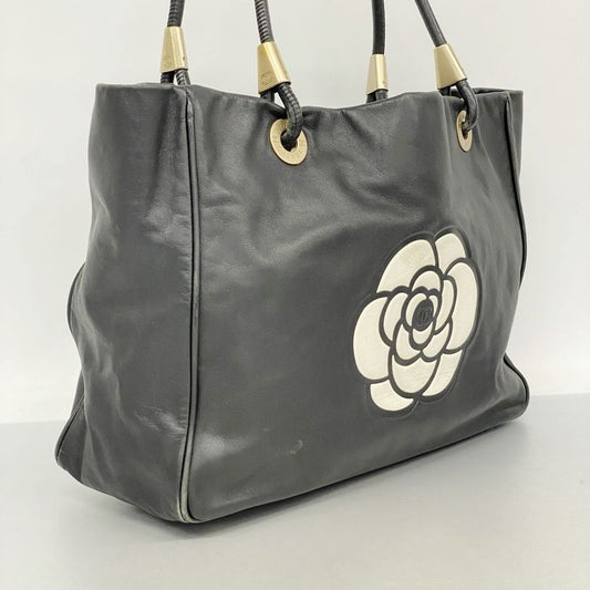 Chanel Tote Bag Camellia Lambskin Black Chien Pan Gold Hardware Women's