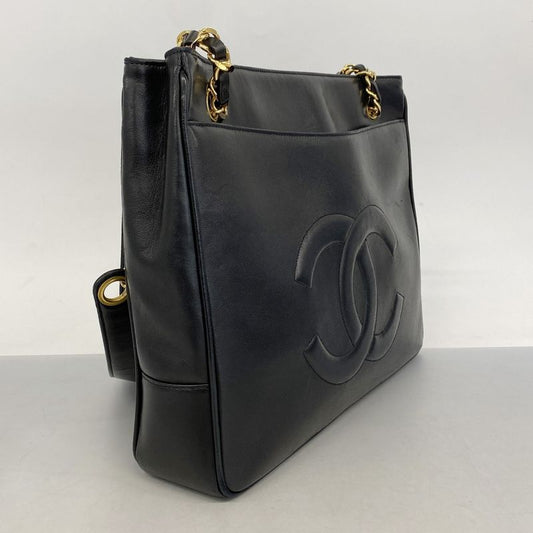 Chanel Shoulder Bag Lambskin Black Gold Hardware Women