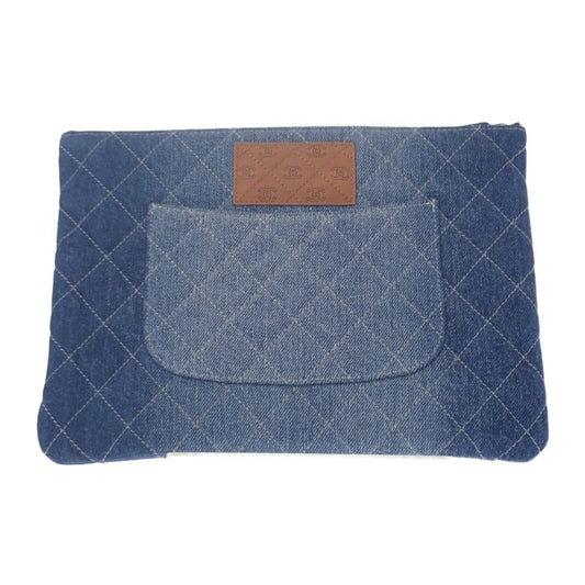 Chanel Coco Mark Clutch Bag Denim Blue Silver Hardware Ladies Men Unisex