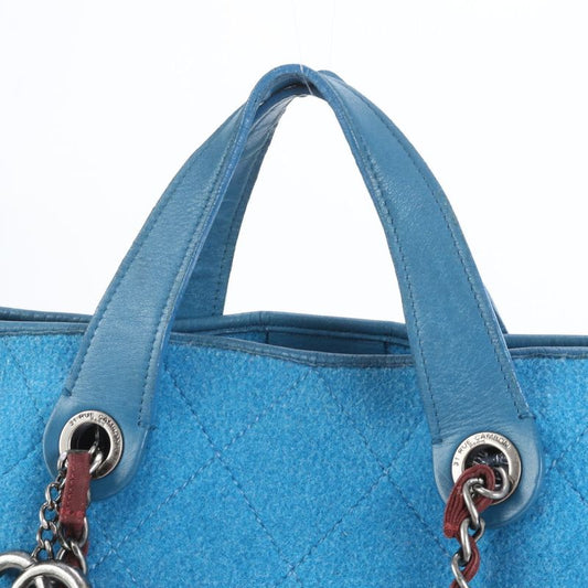 Chanel Coco Mark Chain Tote Bag Light Blue Caviar Skin Women's Chanel
