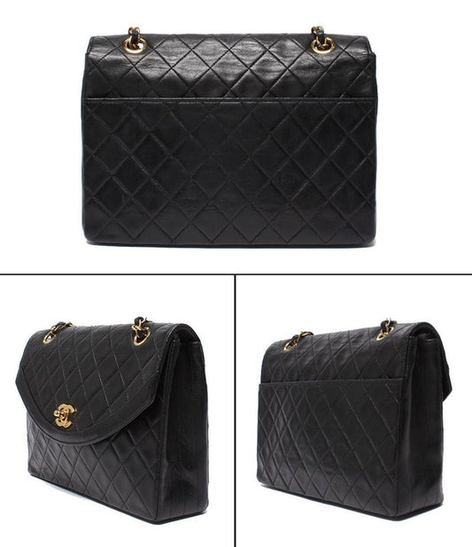 Chanel Chain Shoulder Bag Double Chain Single Flap Gold Hardware Lambskin 0