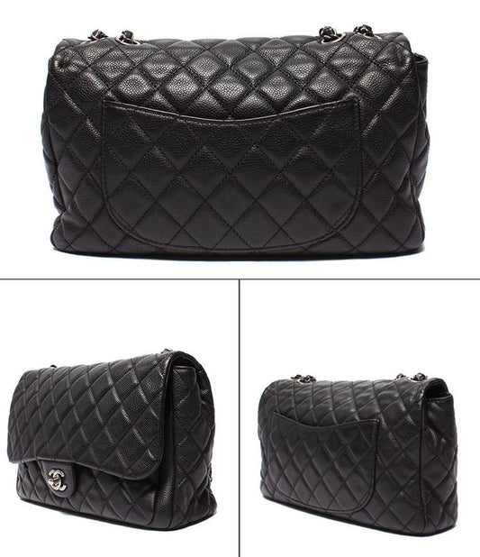 Chanel Chain Shoulder Bag Caviar Skin Silver Hardware 18s Double Chain Single
