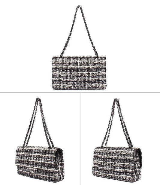Chanel Shoulder Bag Handbag Shoulder Tweed Double Chain Double Flap Silver