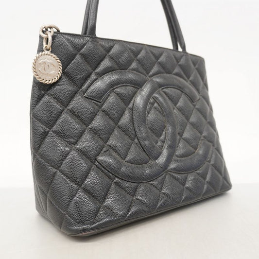 Chanel Tote Bag Revival Tote Caviar Skin Black Silver Hardware Women's