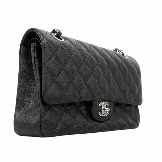 Chanel Shoulder Bag Matelasse Caviar Skin Black Silver Hardware Women
