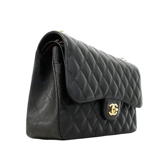 Chanel Shoulder Bag Deca Matelasse Caviar Skin Black Chien Pan Gold Hardware