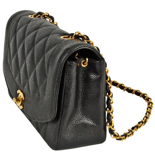 Chanel Diana 22 Single Flap Chain Shoulder Bag Caviar Skin A01164 Black Gold