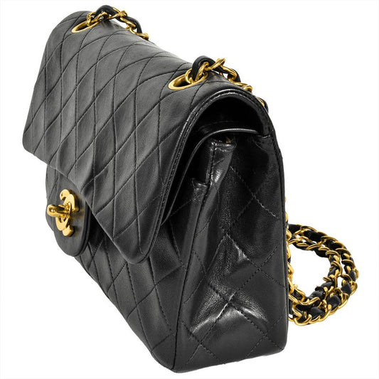 Chanel Matelasse 25 W Flap Chain Shoulder Bag Lambskin Black Gold Hardware Coco