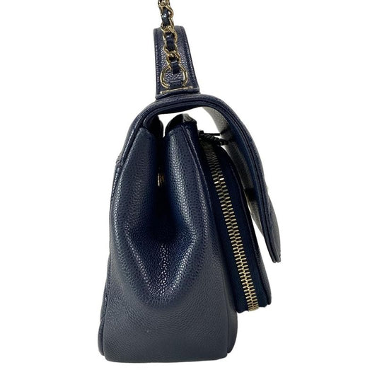 Chanel Shoulder Bag Matelasse Navy Marine Charm / Vintage Gold Hardware /