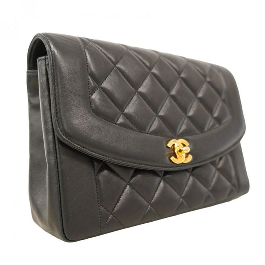 Chanel Shoulder Bag Diana Lambskin Black Gold Hardware Women