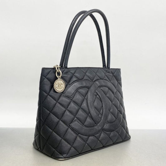 Chanel Tote Bag Revival Tote Caviar Skin Black Silver Hardware Women's