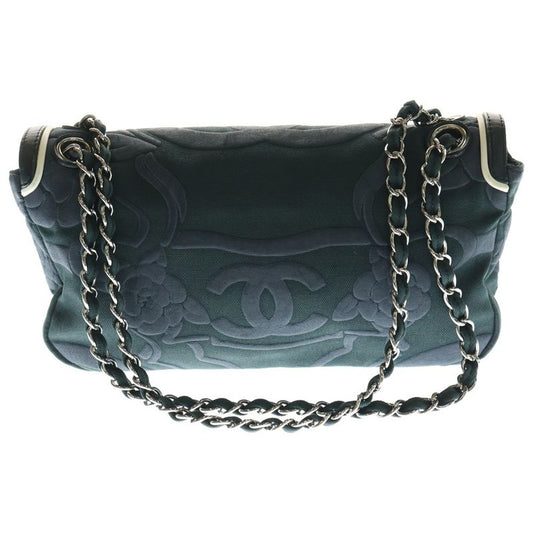 Chanel Camellia Chain Shoulder Bag Black Gray Canvas And Leather Silver Hardware