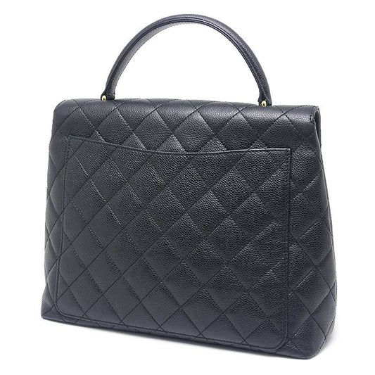 Chanel Matelasse Handbag Black And Gold Hardware Coco Mark Caviar Skin