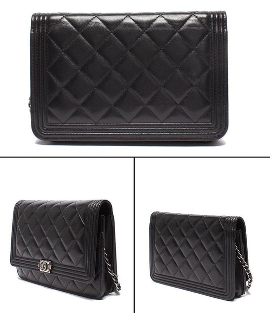 Chain Shoulder Wallet Crossbody Silver Hardware Lambskin Matelasse Boy Chanel