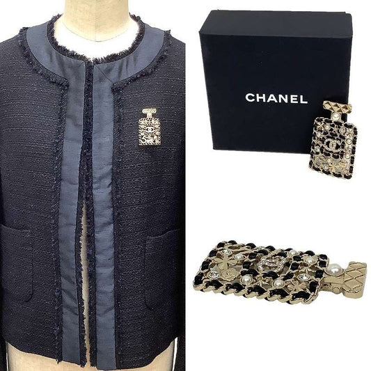 Object Chanel Brooch Bottle Motif Clover Camellia No5 Pearl Gold And Black