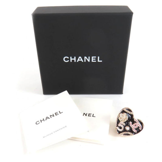 ◇chanel B24S Coco Mark Camellia No5 Icon Heart Pin Brooch Black Gold With Box
