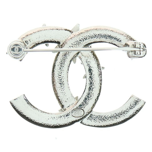 Chanel Coco Rhinestone Cles Brooch Pin Badge Silver