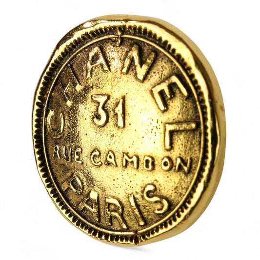 Chanel Vintage 31 Rue Cambon Logo Round Brooch Gold Color Ladies Secondhand Used