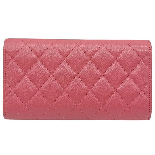 Chanel Matelasse Caviar Skin Pink Coco Mark Long Wallet Serial Sticker Card