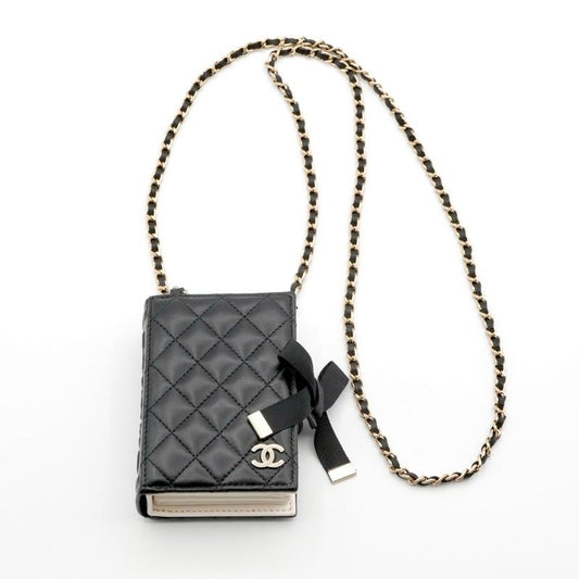 Chanel Card Case Matelasse Lambskin Black Silver Hardware Men Women Unisex