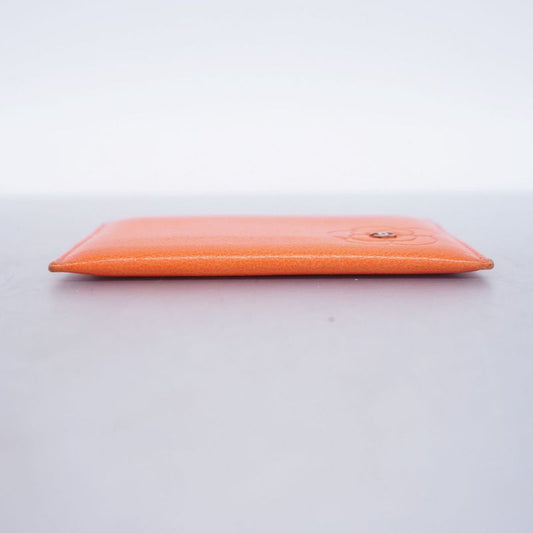 Chanel Card Case Camellia Leather Orange Silver Hardware Women