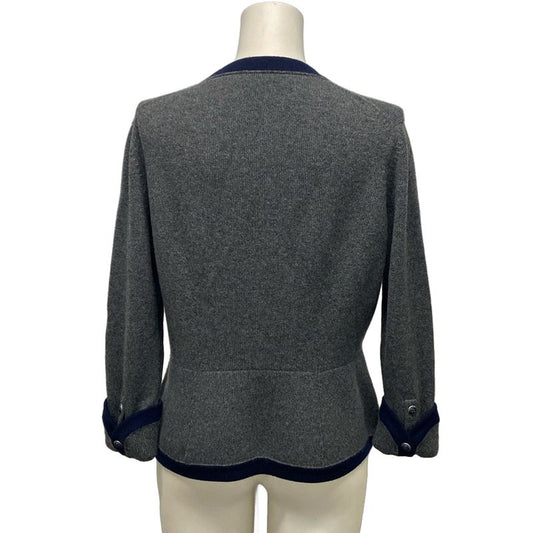 Chanel Cardigan Size 42 L Women - P59182 Grey And Dark Navy Long Sleeves 2018