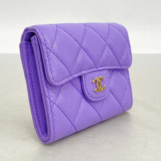 Chanel Card Case Matelasse Caviar Skin Purple Chien Pan Gold Hardware Women