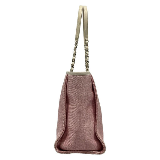Chanel Tote Bag Deauville Line MM Pink X White Silver Hardware / Chain Shoulder