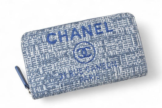 Chanel Wallet Fold Chanel Wallet A81973 Coco Mark Deauville Blue Tweed