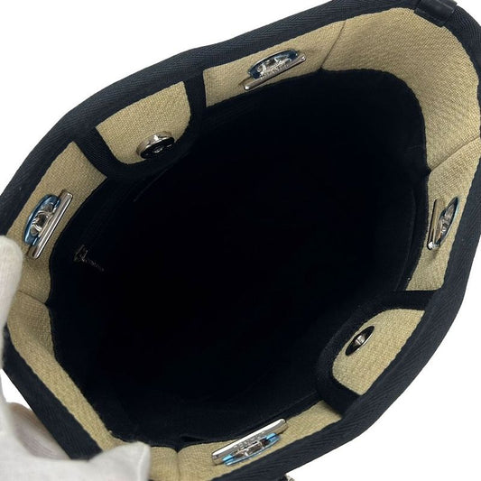 Chanel Tote Bag PM Chain Shoulder Deauville 16th Canvas Beige Black Silver