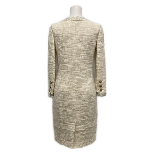 Chanel Dress Size 38 M Women - P43891 Ivory White And Silver Long Sleeves Knee