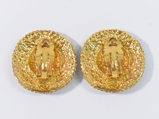 Authentic Chanel Coco Mark Rhinestone Earrings GP Gold Plated Coco Mark