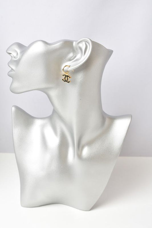 Chanel Earrings Chanel Logo CC Coco Mark Swing Rhinestone Black Gold