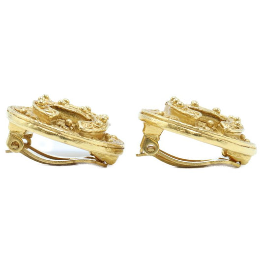 Chanel 14P GP Pearl Coco Mark Earrings Accessories Gold Ladies